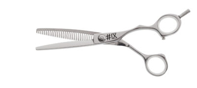 Hochwertige Modellierschere der Spitzenklasse mit extrem weichem Gang dank innovativer Zahnung. 30 Zähne, polierte Schneide. Flaches Schraubsystem, geschmiedeter Fingerhaken. Ergonomische Offset Form, perfekte Balance in der Hand. -convexe Schneide -weicher Gummistopper -wechselbarer Fingerhaken -dHg-Gangstelle -Offset-Stellung -Handpolierte hochglänzende Oberfläche -401748