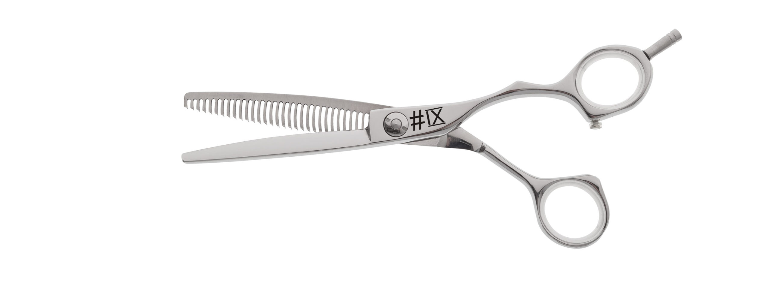 Hochwertige Modellierschere der Spitzenklasse mit extrem weichem Gang dank innovativer Zahnung. 30 Zähne, polierte Schneide. Flaches Schraubsystem, geschmiedeter Fingerhaken. Ergonomische Offset Form, perfekte Balance in der Hand. -convexe Schneide -weicher Gummistopper -wechselbarer Fingerhaken -dHg-Gangstelle -Offset-Stellung -Handpolierte hochglänzende Oberfläche -401748