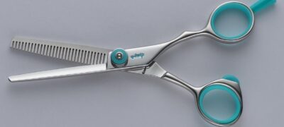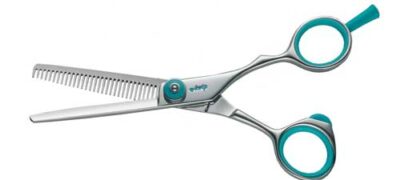 Offset Modellierschere, 40 Zähne, mit türkisen Elementen 5,5″ = 14,5cm -406165